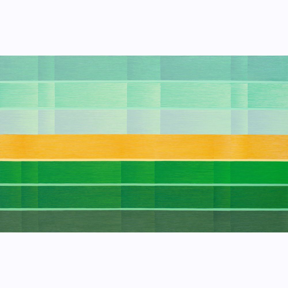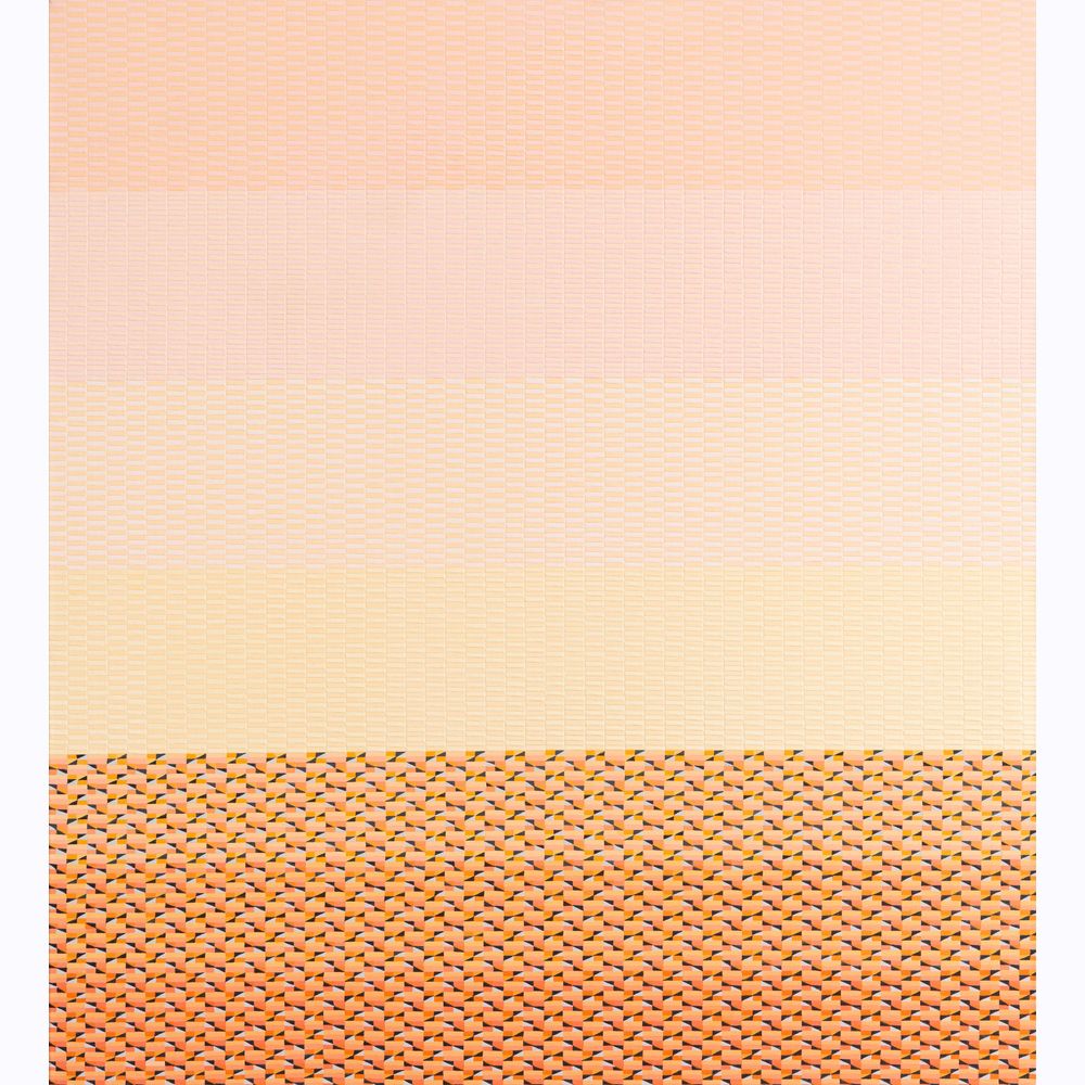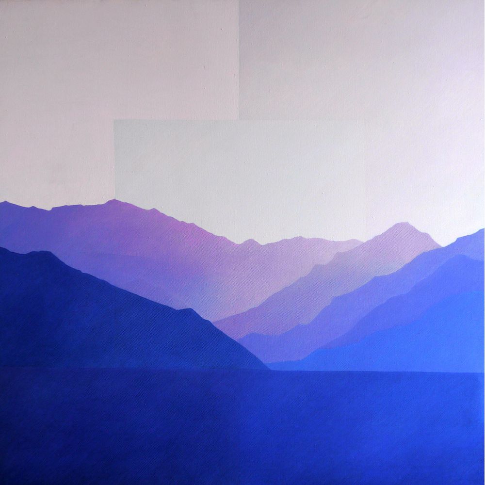 I soggetti di Vacchini sono parte di visioni quotidiane e dei loro attori: fori, paesaggi, i propri famigliari e amici e la loro forza e complessità si rivela non tanto per la forma che esprimono ma per il messaggio di cui si fanno portatori, un messaggio tanto specifco, caratterizzato e unico, quanto universale. Un esempio di questo meccanismo sono i paesaggi: ritratti del Ticino, della Liguria, della Grecia e le sue isole tanto care all’artista, si tratta di posti specifci che nelle opere però paiono prive di ogni caratteristica identifcativa e si fanno portatori di un sentimento universale e astratto, come uno spartito musicale. Guardando le tele da vicino infatti, spostando quindi l’osservazione dalla globalità al dettaglio, particolarmente rilevante appare la struttura di queste minuscole cellette, ora più spesse ora più fni di colore. Le opere infatti sono il risultato della sovrapposizione di molti strati di colore, piccoli campi dai toni poco distanti uno dall’altro e contenuti in mictostrutture - microcelle geometriche che si ripetono e defniscono una regola unitaria che si ripete su tutta l’intera superficie letteralmente costruendola come mattoni.